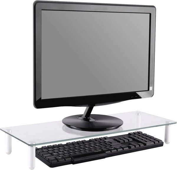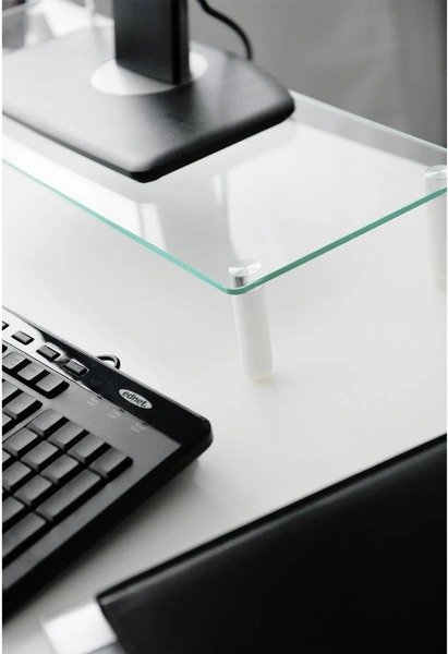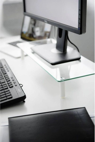 З універсальною скляною підставкою для монітора, ви можете підключити монітор на робочій висоті і одночасно звільнити місце на столі. Загартоване безпечне скло та силіконові ніжки, що не ковзають, забезпечують надійну стійку для монітора.