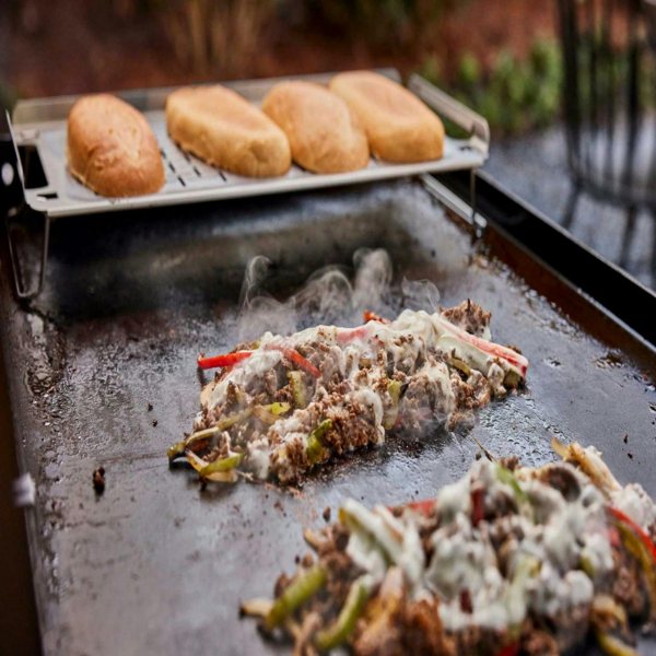 Смажте на грилі бургери та одночасно зберігайте булочки підсмаженими за допомогою спеціальної підставки Weber. Надзвичайно міцна підставка продумана таким чином, щоб додати максимальний рівень комфорту до приготування поетапних страв. Після того, як приготування закінчено, складіть ніжки для зручного зберігання.