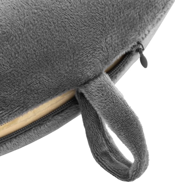 Внутрішнє наповнення подушки складається з адаптивної поліуретанової піни з ефектом пам'яті (Memory Foam), а зовнішній знімний чохол на блискавці виготовлений із практичного поєднання матеріалів. Для максимальної зручності під час транспортування виріб оснащений спеціальною застібкою-кнопкою, яка дозволяє надійно зафіксувати подушку на сумці чи рюкзаку.