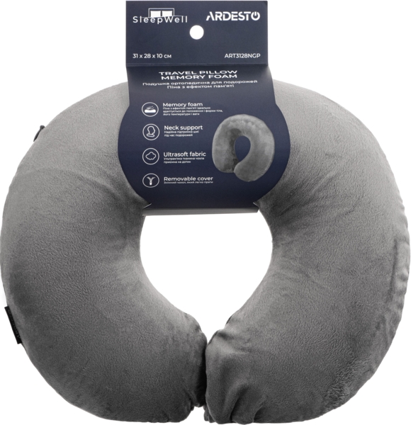 - Подушка ортопедична ARDESTO Sleepwell Travel 31х28х10см, для шиї, сірий (ART3128NGP)