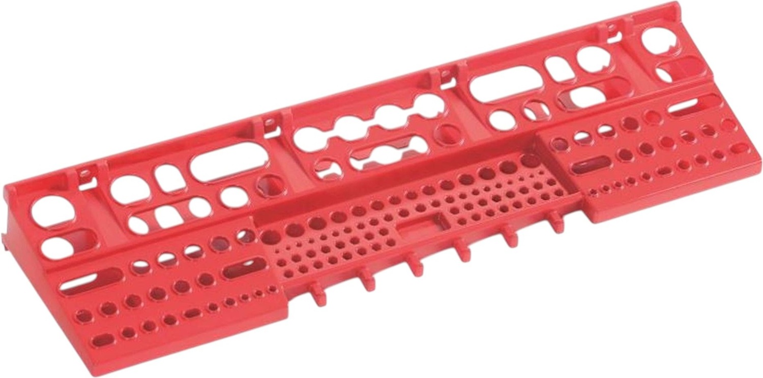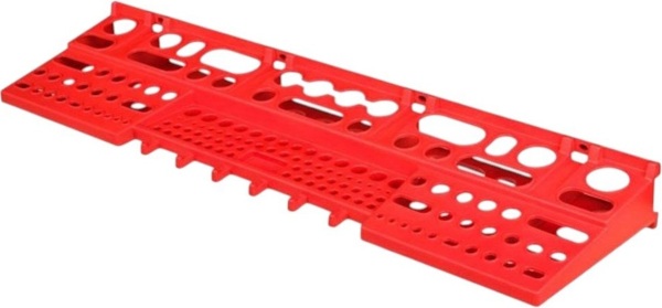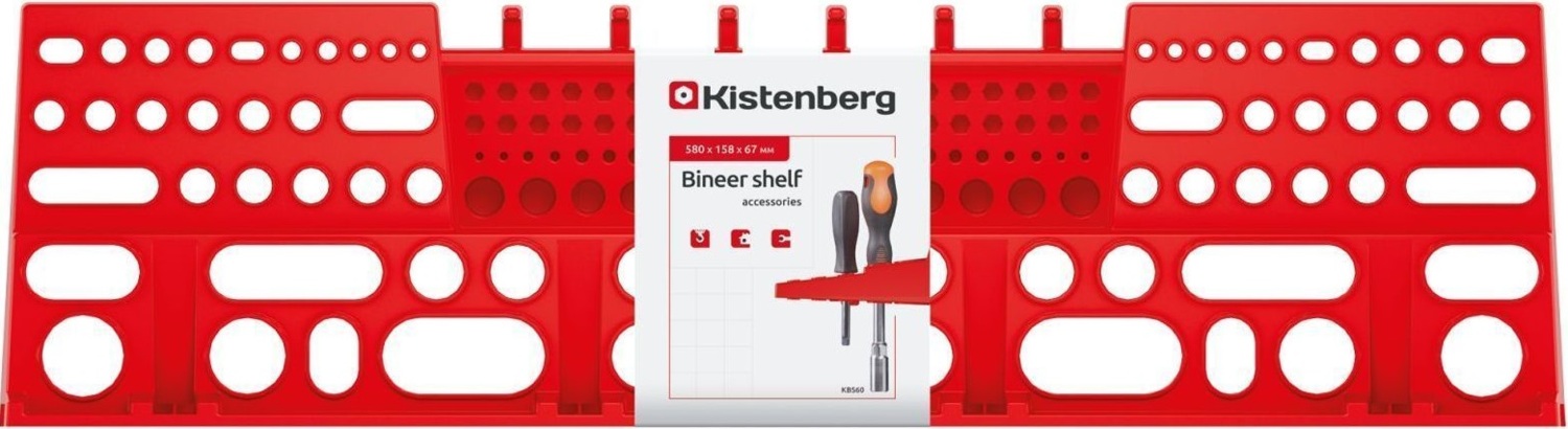Велика полиця для інструментів розміром 580х158х67 мм на 137 отворів. Ідеальне рішення для розміщення предметів в малогабаритному приміщенні. Викрутки, біти, дрібні ключі, різного роду насадки для інструменту та подібне, знайдуть своє місце на даній полиці. Ця полиця може кріпитися до стіни, як самостійно за допомогою 4 отворів фіксації, так і входити в систему з контейнерами, полицями, гачками завдяки настінним панелям. З настінною полицею Kistenberg робота стає не лише комфортнішою, а й ефективнішою. Інструменти завжди на своєму місці, під рукою та в порядку — саме так виглядає сучасний підхід до організації робочого простору.