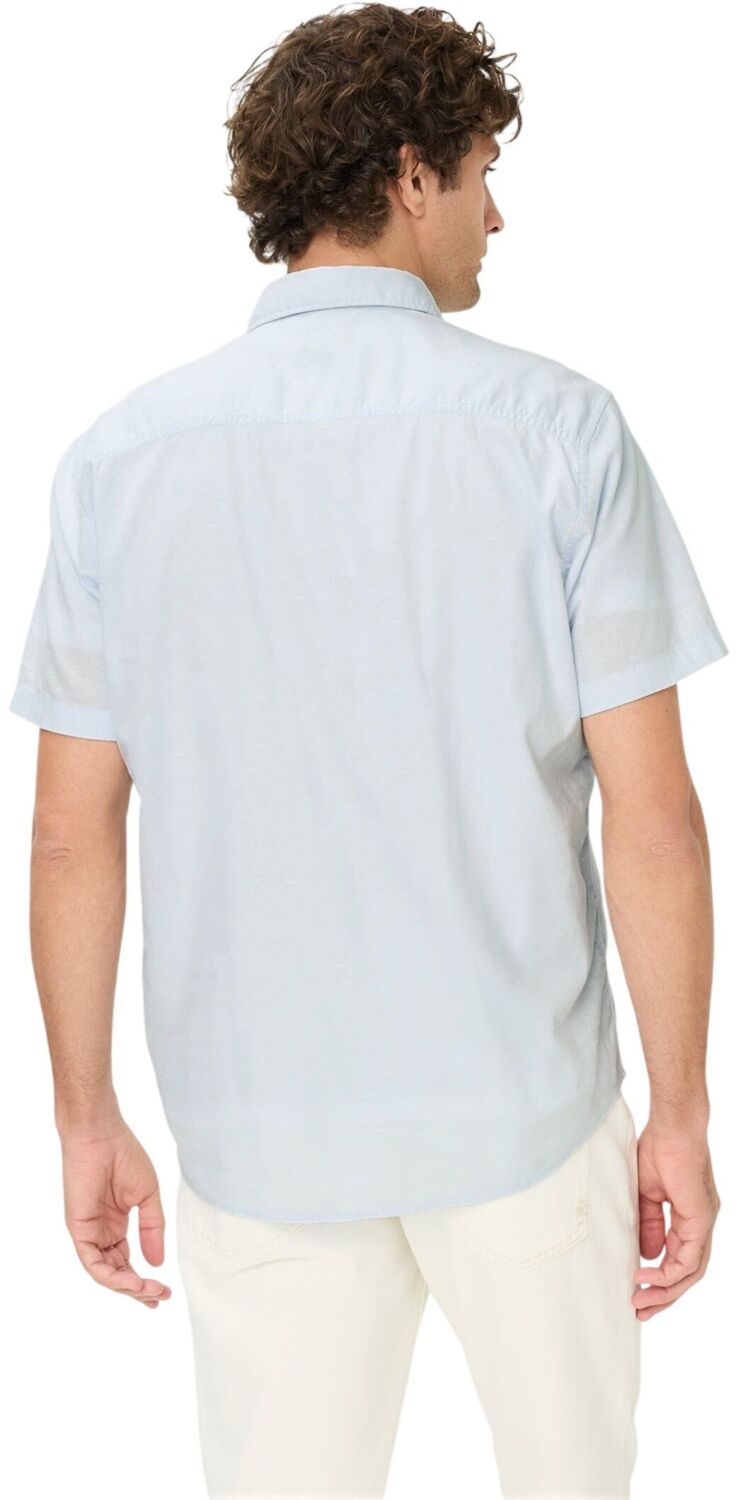 Сорочка вирізняється міцною фактурною тканиною та забезпечує високу свободу рухів завдяки вмісту еластану. Виготовлена зі змішаної тканини з додаванням льону та бавовни, сорочка відрізняється приємною повітропроникністю та ідеально підходить для теплих днів. Комір із застібкою на ґудзиках та короткі рукави надають їй невимушеного вигляду. Практична нагрудна кишеня підвищує її функціональність. Завдяки прямому крою сорочка підходить для повсякденного носіння та відрізняється простотою догляду. Міцна тканина робить її надійним вибором для щоденного носіння.