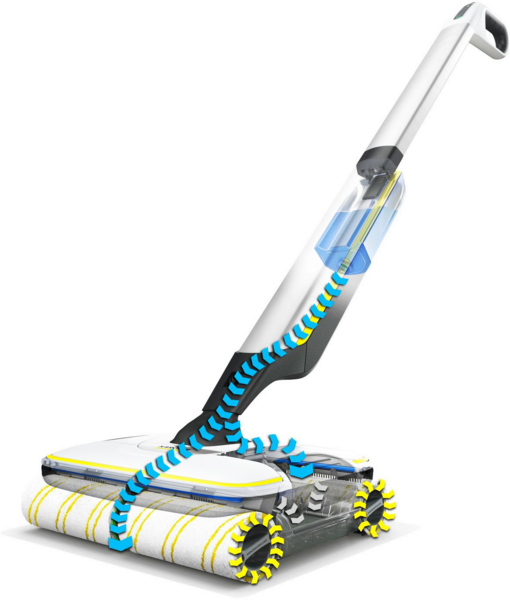 Тепер у цьому немає потреби, завдяки технології роликових щіток, що обертаються назустріч одна одній, акумуляторна електрошвабра FC 7 Cordless легко і швидко видаляє з будь-яких твердих підлогових покриттів будь-які повсякденні сухі та вологі забруднення. Апарат ретельно очищає підлогу, причому режим Boost дає змогу усувати стійкий бруд, а спеціальний фільтр - збирати навіть волосся. При цьому досягається значна економія часу (до 50% порівняно зі звичайними методами прибирання), а результат прибирання на 20% перевершує той, що забезпечується звичайною шваброю. Одного заряду потужного акумулятора достатньо для 45 хвилин роботи апарата, що відповідає прибиранню до 175 м² твердих підлогових покриттів.