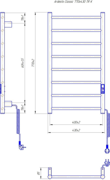 Рушникосушка ARDESTO електрична Classik-TR K, 770x430х80мм (6.1.0601.06.WM)
