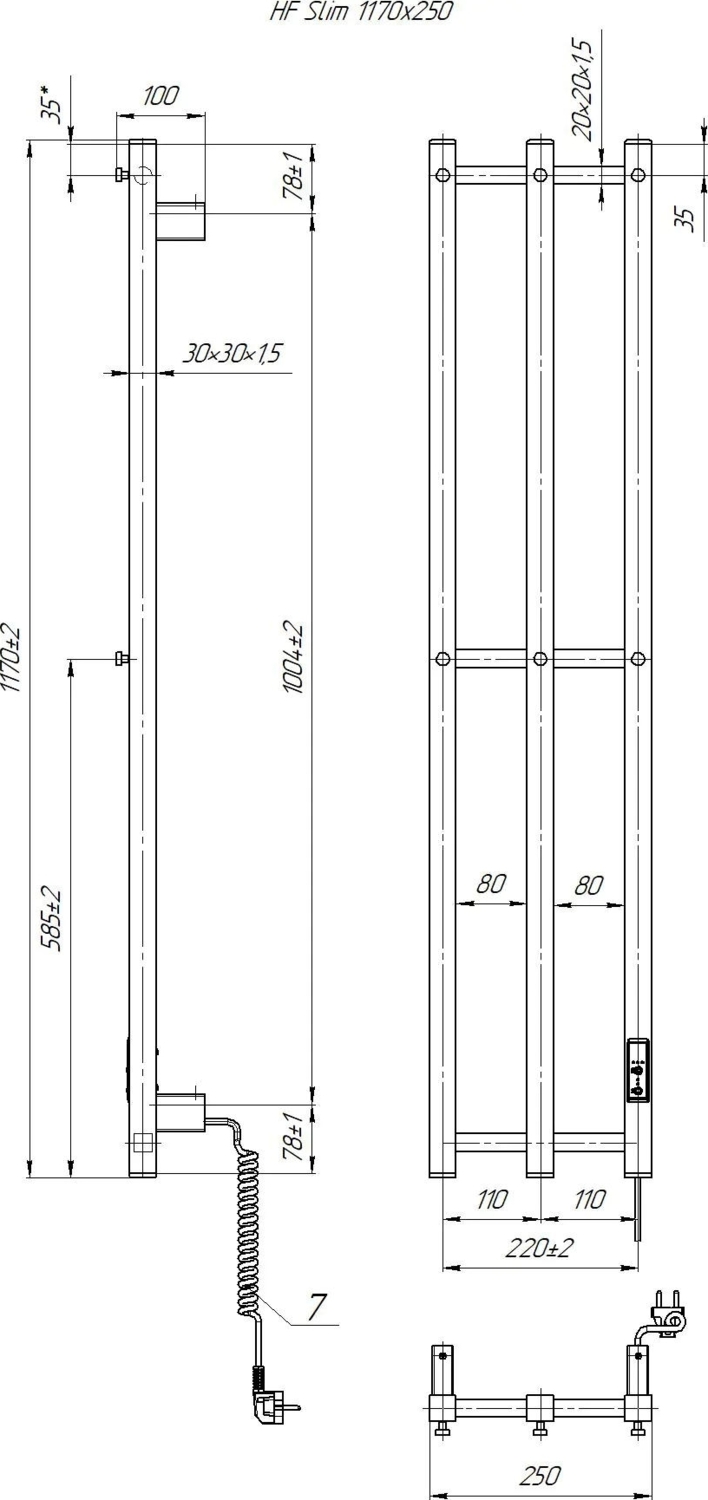 Рушникосушка Hygge Family електрична Slim, 1170х250х80мм (3.164.045798.WM)