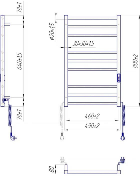 Рушникосушка Mario електрична Преміум Класик-ITR K, 800х500х80мм (2.2.1608.03.G)