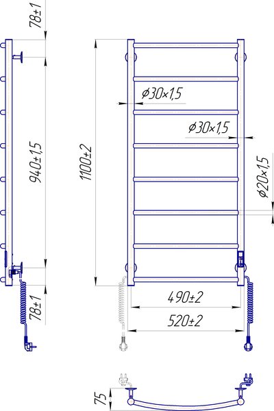 - Рушникосушка Mario Класік НР-І 1090х530/85 електр. TR К (2.3.0117.10.P)