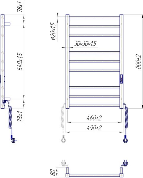 Рушникосушка Mario Преміум Класік-I 800х500/80 електр. TR До чорний матовий (2.2.1608.03.BM)