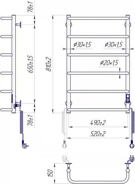 - Рушникосушка Mario Стандарт НР-І 800х530/150 електр. TR К (2.3.0215.10.P)