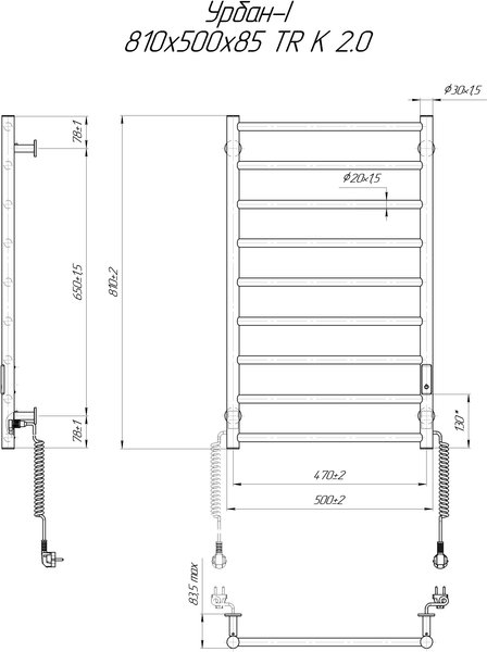 - Рушникосушка Mario Урбан-I 810x500-85мм електр., з таймером-регулятором 2.0, чорний матовий (2.3.8300.10.BM)