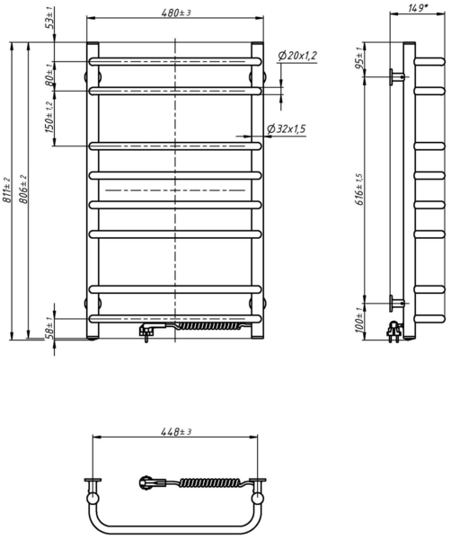 Рушникосушка Navin електрична Симфонія, 800х480х150мм, кнопка, сталь, білий, праве підключення (12-009030-4880)