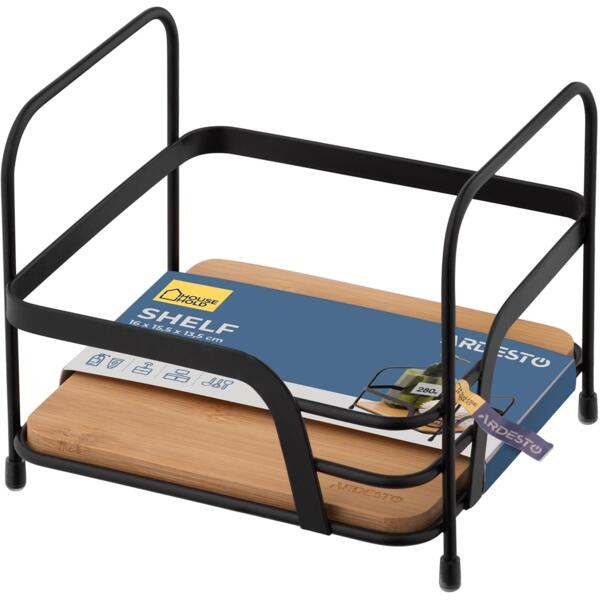 Багатофункціональна одноярусна полиця ARDESTO Minimalism допоможе організувати простір у ванній кімнаті, кухні, спальні чи вітальні. ЇЇ виготовлено з металу та бамбуку, довговічного та стійкого до вологи. Завдяки компактному розміру (16х15,5х13,5 см) полицю можна розмістити навіть у невеликому просторі та зручно впорядкувати всі необхідні речі, не займаючи багато місця. Мінімалістський дизайн і класичний чорний колір у поєднанні з натуральним бамбуком додають теплих акцентів і створюють відчуття затишку.