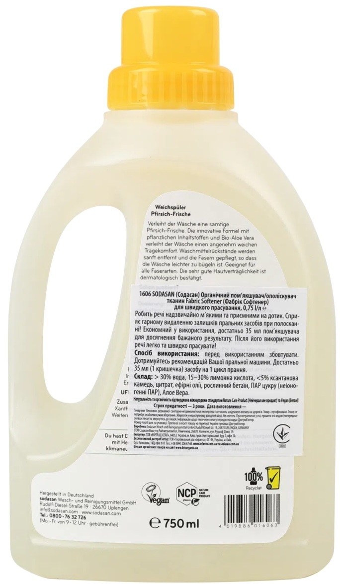 - Пом’якшувач-ополіскувач Sodasan Organic Fabric 750 мл