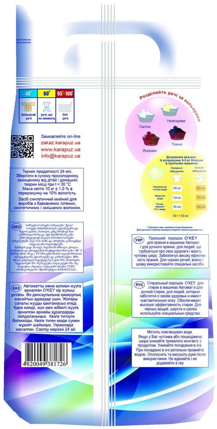 - Порошок для прання O'KEY Universal автомат 10кг