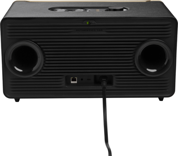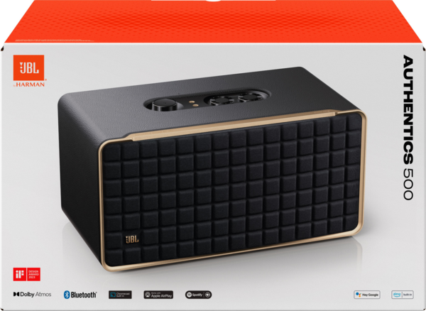 JBL Authentics 500 натхненна класичним ретро-дизайном JBL, який доповнить будь-яку кімнату і наповнить будь-який простір чудовим звуком JBL. Алюмінієва рама преміумкласу, корпус зі шкіряним покриттям та переосмислена решітка Quadrex демонструють увагу, яку JBL приділили кожній візуальній деталі, аж до фірмового візерунка JBL, що оточує пасивний випромінювач.