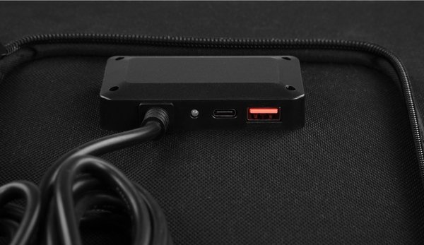 Портативна сонячна панель – оптимальне рішення для тих, хто хоче мати надійне джерело енергії чи не за будь-яких умов: у кемпінгу, під час подорожей або на фронті – будь-де, де централізоване електроживлення недоступне. Модель вирізняється високим коефіцієнтом конверсії (22-23,5%) та продуманою конструкцією: панель має дві секції, опори для встановлення під оптимальним кутом нахилу, зручні руків’я для легкого транспортування. Крім того, пристрій дійсно можна вважати мобільним: за ваги 2,9 кг у складеному стані має розмір 560 × 632 × 45 мм, тож не займатиме багато місця. Також неспростовною перевагою моделі є багатство інтерфейсів. Панель оснащена рознімами DC, USB-A, USB-C і Anderson, що робить її придатною до використання з різними типами пристроїв і зарядними станціями. А технологія QC3.0 дасть змогу зарядити сумісний акумулятор до 50 % приблизно за 30 хвилин, при цьому автоматично визначаючи оптимальний рівень напруги, що максимізує ефективність заряджання.