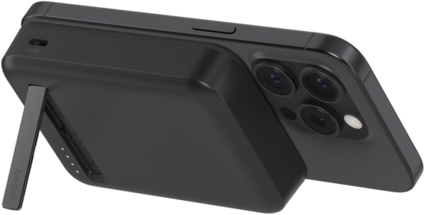 Незалежно від того, граєте ви в ігри, транслюєте потокове відео або переглядаєте вебсторінки, магнітний павербанк утримує ваш пристрій під ідеальним кутом для роботи без затискача або кріплення, що закриває будь-яку частину екрана. Вбудована підставка дає змогу дивитись на екран, продовжуючи користуватись інтернетом або відповідати на дзвінки.