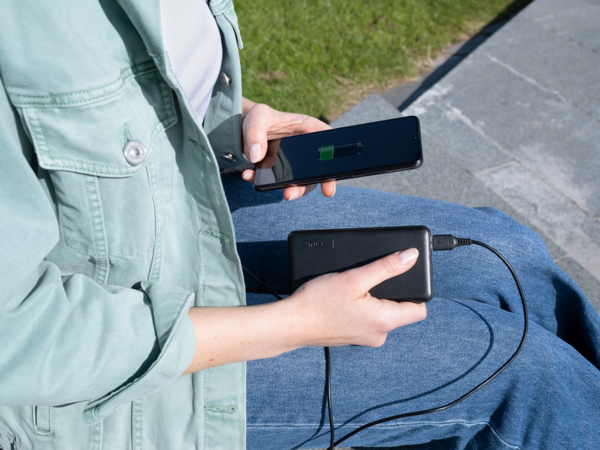 Одночасно заряджайте три телефони або планшети будь-якого бренду через 2 порти USB-A та 1 порт USB-C, щоб завжди бути на зв'язку та готовими до роботи (або розваг). Заряджайте сам павербанк за допомогою кабелю micro-USB або порту USB-C, що входить до комплекту.