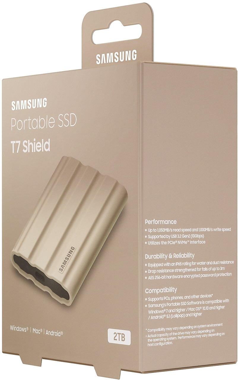 Надзвичайно міцний, швидкий і компактний. Новий T7 Shield забезпечує чудову продуктивність на ходу, навіть у складних умовах навколишнього середовища. Надвисока швидкість всередині та міцний захист зовні забезпечують безперервну роботу, готовність до передачі клієнту або до практичного використання в домашніх умовах.