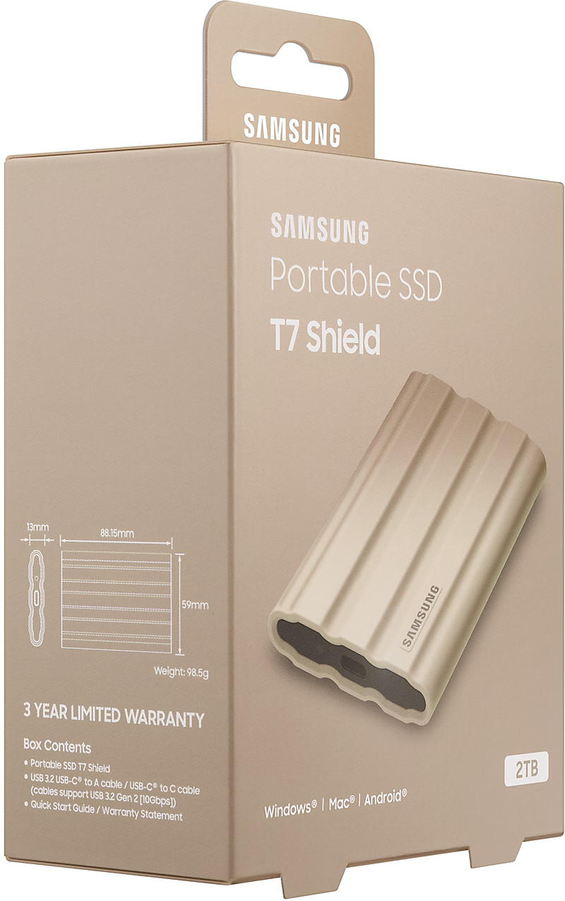 - Портативний SSD Samsung 2TB USB 3.2 Gen 2 Type-C T7 Shield (MU-PE2T0K/WW)
