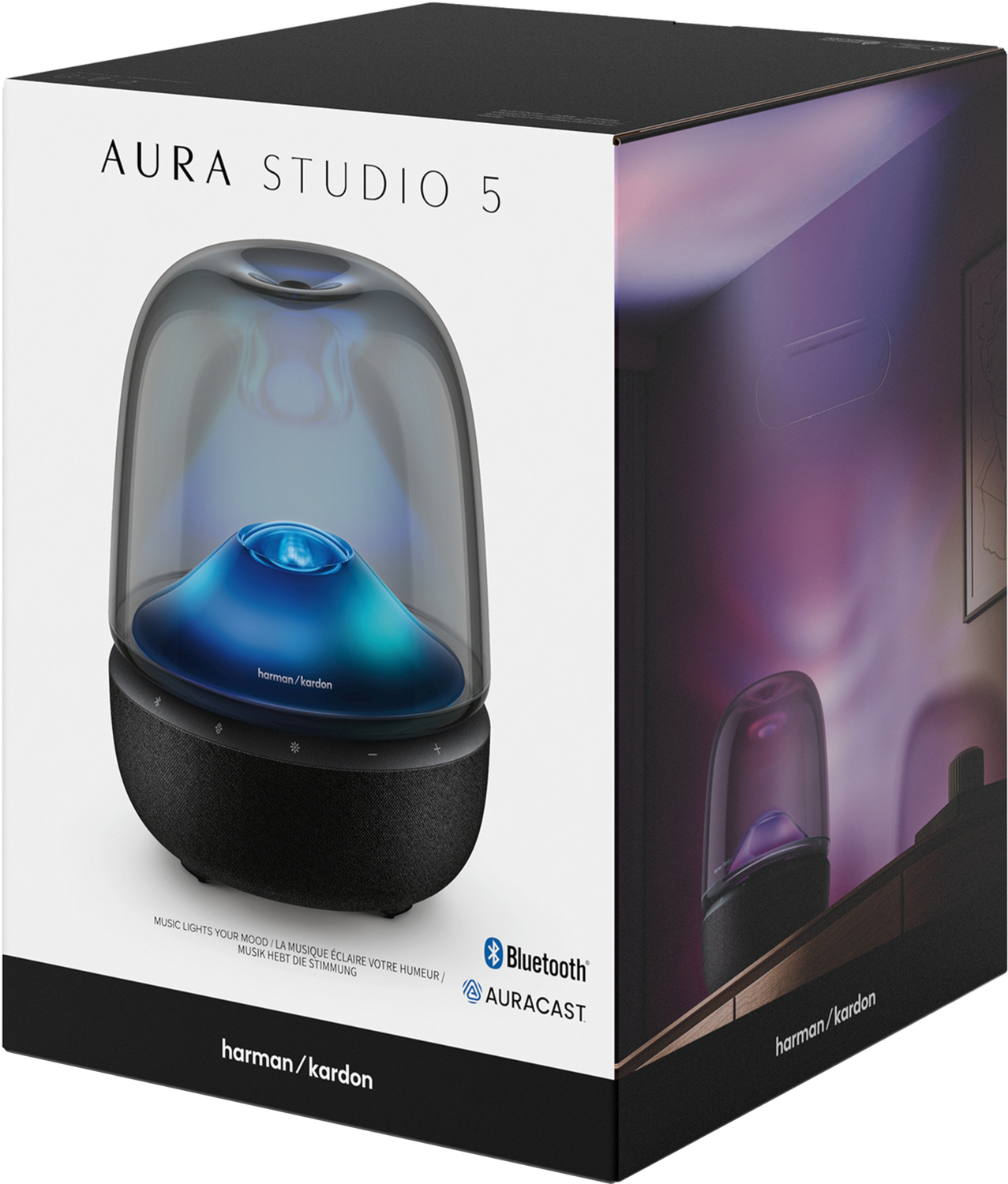 Aura Studio 5 має функцію підключення декількох колонок через Auracast. Використовуйте додаток Harman Kardon One для підключення двох або більше колонок Harman Kardon і наповніть свій простір бездоганним синхронізованим звуком. Створюєте настрій або влаштовуєте вечірку - без зусиль підключайте стільки колонок, скільки хочете, щоб отримати захопливий звук з ефектом занурення.