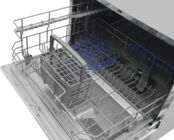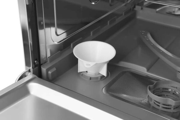 Панель керування складається зі світлодіодного дисплея та 4 кнопок для увімкнення/вимкнення, вибору циклу миття або активації відкладеного старту. Посудомийна машина дозволяє швидко вимити злегка забруднений посуд, зменшити витрату води або ефективно очистити жирний посуд чи посуд, забруднений сухими продуктами. По закінченню циклу миття ви почуєте звуковий сигнал. Якщо в посудомийній машині не залишилося солі або ополіскувача, про це сповістить попереджувальний світлодіодний індикатор.