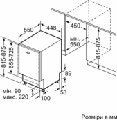 | Висота для вбудовування, мм | 815-875 |
