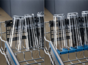 Щоб зменшити ризик пошкодження або розбиття під час миття посуду, гумові кріплення SoftSpike дають змогу закріпити посуд із тонкого скла у вертикальному положенні.