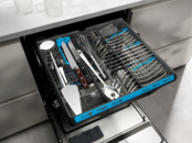 Висувний ящик MaxiFlex розрахований на столові прибори більшості форм та розмірів. Розділювачі з функцією індивідуального налаштування та глибокий ящик дозволяють легко завантажити будь-які прибори, навіть великі чи незвичайної форми.
