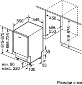 | Висота для вбудовування, мм | 815-875 |