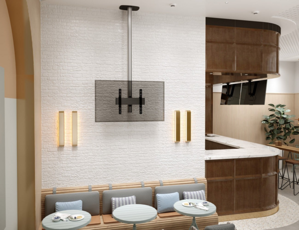 Кронштейн CM-03 – це надійне і зручне стельове кріплення для телевізорів з діагоналлю від 32 до 65 дюймів. Максимальне навантаження – 80 кг. Вертикальний нахил від 0° до 15°. Модель легко монтується на стелю. Відстань від стелі до телевізора 1800 мм. Можна зафіксувати положення дисплея по всій висоті опор до 1800 мм. Стандарт VESA: min 200×200, max 600×400 mm.