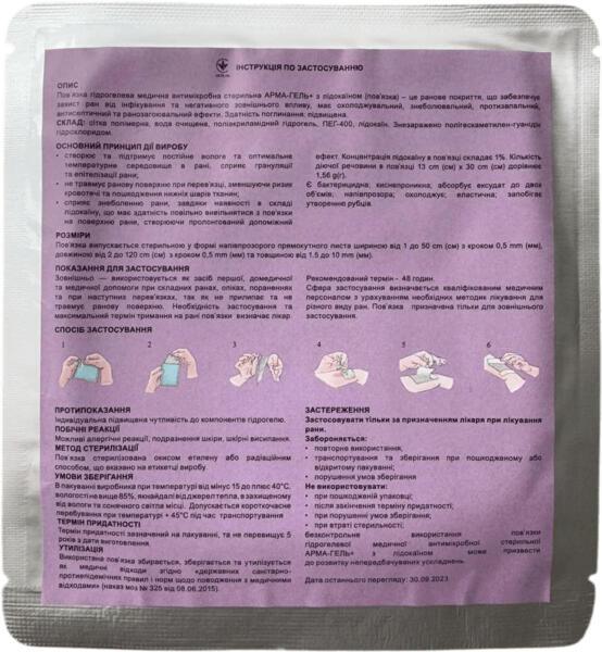- Пов'язка гідрогелева АРМА-ГЕЛЬ+ знеболювальна з лідокаїном 10х10см (52-211-IS)