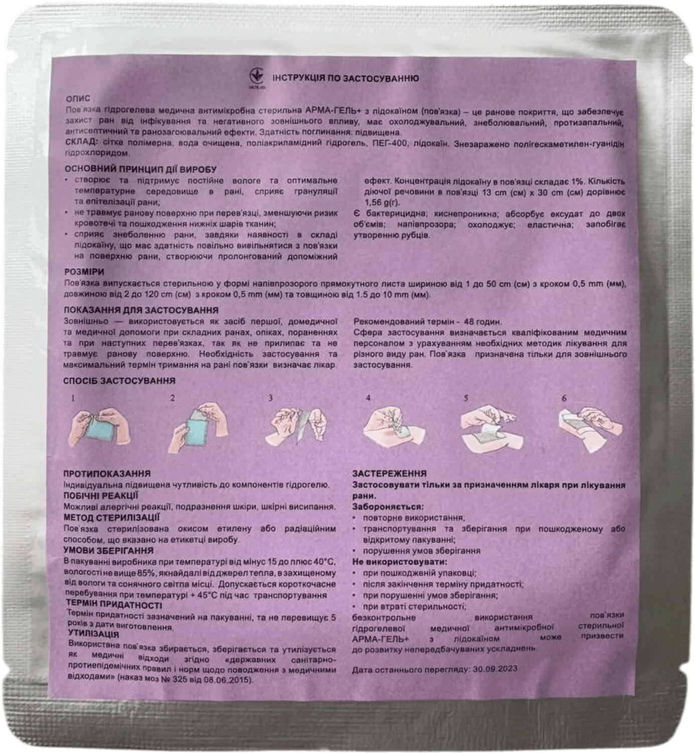 | Комплектація (можливі зміни в різних поставках) | Пов'язка гідрогелева |