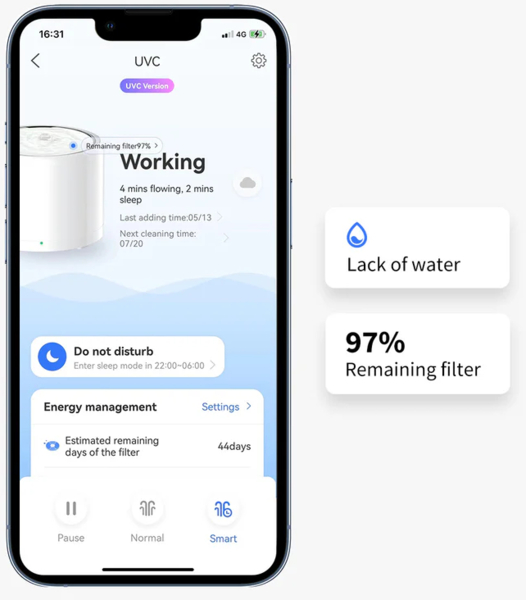 - Дистанційне керування: ви можете дистанційно керувати поїлкою та отримувати сповіщення через систему віддаленого підключення, якщо в якості основного пристрою у вас встановлено хоча б один із пристроїв Petkit .