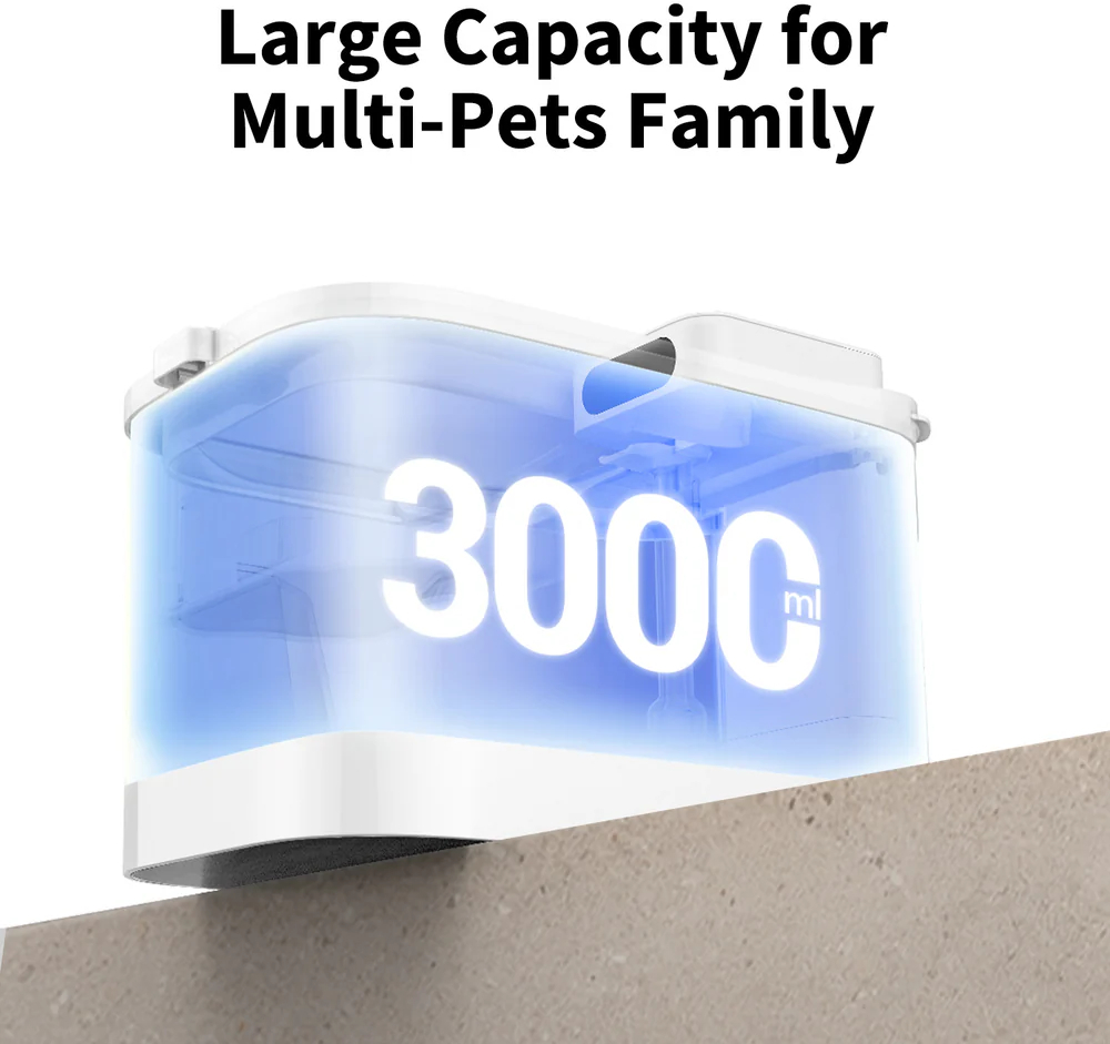 Завдяки місткому резервуару об’ємом 3000 мл вам не доведеться часто доливати воду, і ваші чотирилапі друзі завжди матимуть доступ до свіжої води протягом дня.