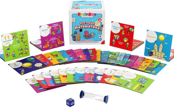 Вітаємо у світі BrainBox! Підготуйтеся отримувати цікаві знання, відповідати на запитання та тренувати мозок! У грі Моя перша математика ви знайдете 55 різних карток на теми класифікації чисел, простих математичних обчислень, одиниць виміру та геометричних фігур! Уважно розглядайте їх, а потім спробуйте дати відповідь на 330 різних запитань, використовуючи лише власну пам'ять! Грайте і вчіться всією сім'єю разом із BrainBox! Рекомендовано для дітей віком від 4 років.