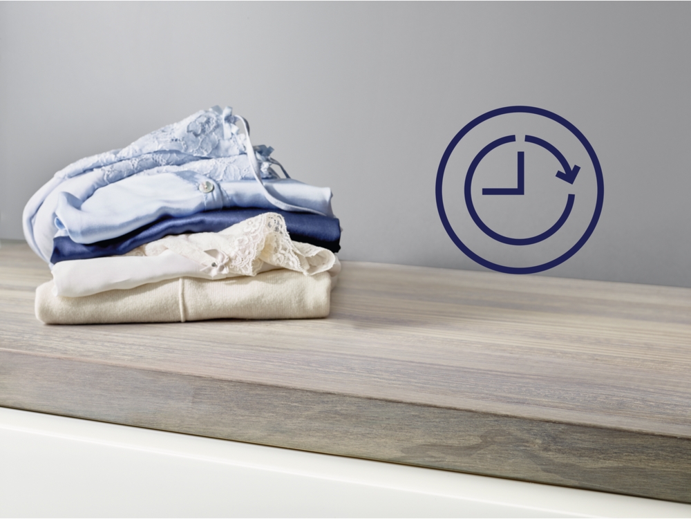 Ретельне прання за більш короткий час з опцією "Економія часу". Натисніть кнопку, щоб скоротити час основного циклу машини аж до 50%. Бавовна і синтетика очищуються в одному повному циклі всього за половину часу.