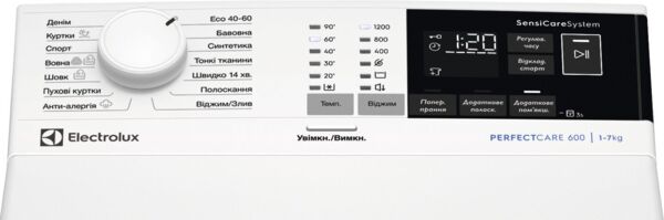 | Додатково | Пральні машини 1200 оборотів , Пральні машини шириною до 55 см , Пральна машина 40 см , Пральні машини ELECTROLUX 7 кг , Пральні машини ELECTROLUX з вертикальним завантаженням , Пральні машини з інверторним двигуном та прямим приводом, Пральні машини ELECTROLUX з парою |