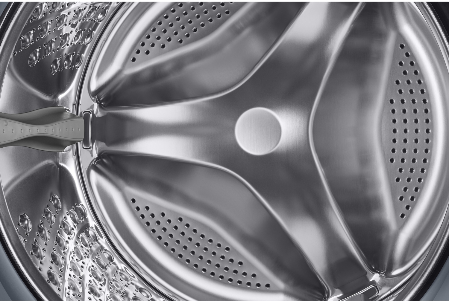 Підтримуйте внутрішню частину пральної машини гігієнічно чистою та свіжою. Режим Drum Clean+ видаляє з барабана бруд і 99,9% бактерій, що викликають запах завдяки комбінації замочування, пульсації та високошвидкісного віджимання. Водний струмінь під великим тиском і висока швидкість обертання також усувають бруд навколо прокладки дверей. І він автоматично сповіщає вас, коли потребує очищення.