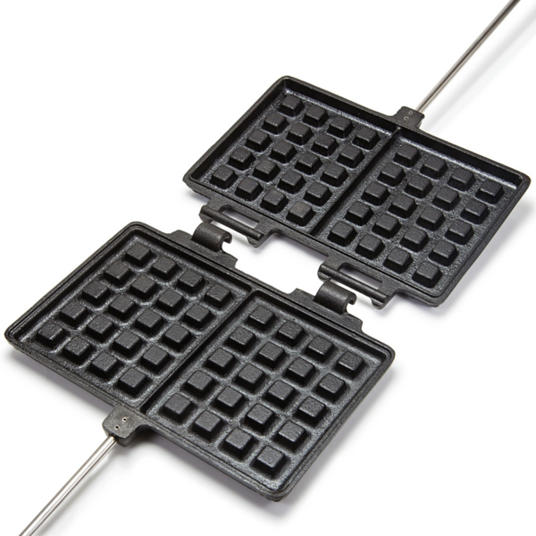Чавунний прес-гриль від німецького бренду Petromax. Допомагає готувати ніжні бельгійські вафлі на вогнищі. Інструмент складається з двох стулок, і розрахований на дві вафлі завбільшки 9х11 см. Солодкі чи солоні, у формі Petromax Waffle Iron смаколики готуються швидко й без зусиль — лишається додати улюблений топінг.