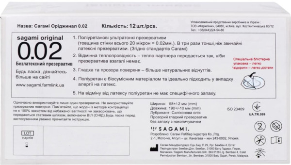 - Презервативи Sagami Original 0.02 поліуретанові 12 шт