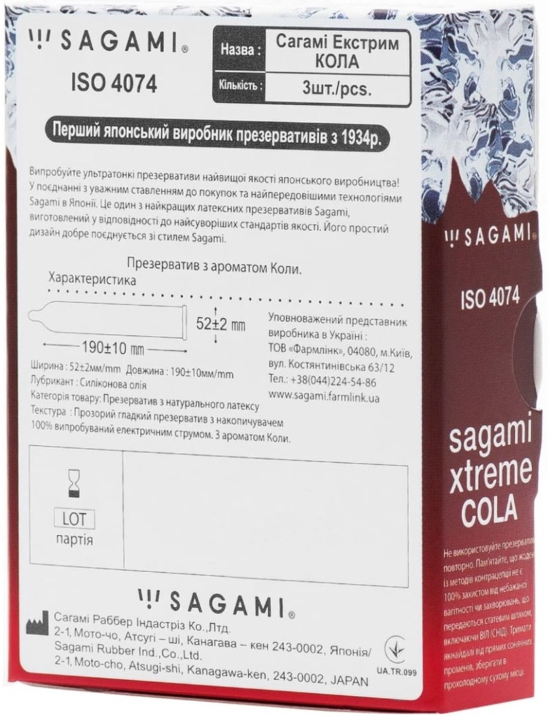 - Презервативи Sagami Xtreme Cola латексні 3 шт
