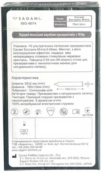 Освіжаюча дія ментолу викликає нові незвичайні відчуття у партнерів. Незабутня стимуляція нервових закінчень в освіжаючому дотику. Ультратонкі (0,04 мм) латексні презервативи з м'ятним ароматом і охолоджувальним ефектом.