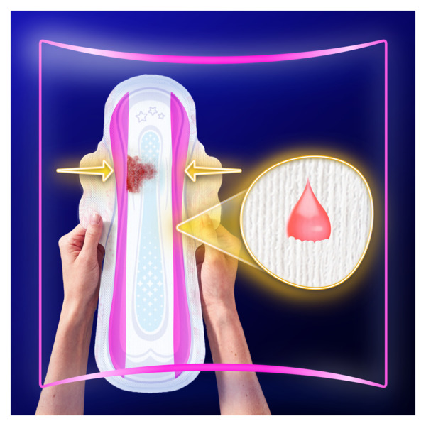 - Супергігроскопічні гігієнічні прокладки з системою InstantDry, яка миттєво вбирає вологу.