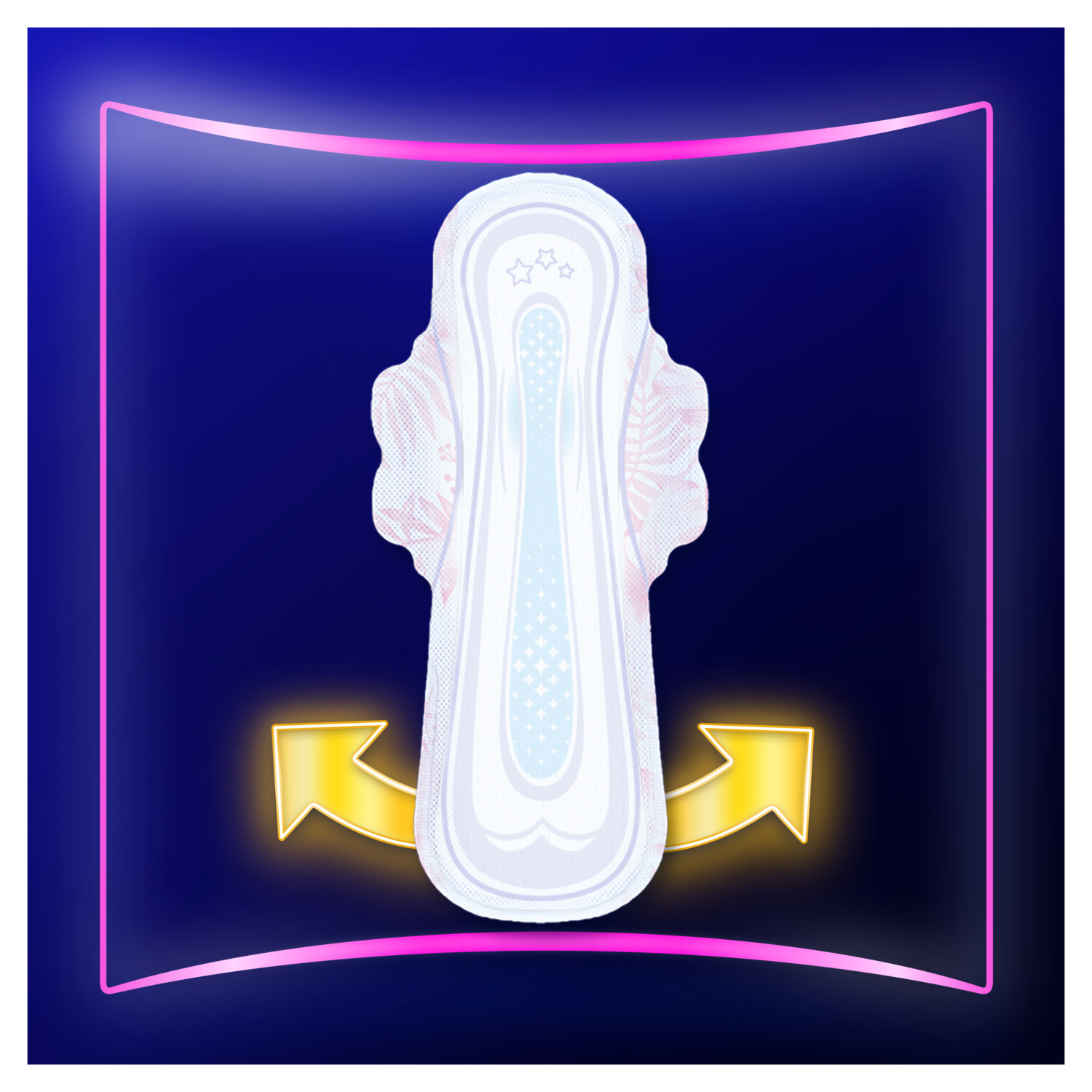 Гігієнічні прокладки з крильцями Always Ultimate Night (розмір 6) забезпечують максимальний захист, тому вам не доведеться прокидатися, щоб перевірити протікання або змінити прокладку посеред ночі. Найдовші та найширші прокладки з технологією LeakGuard мають найбільш поглинальний вміст, щоб запобігти нічним протіканням під час менструації. Система InstantDry миттєво вбирає рідину та утримує вологу. Технологія ComfortFit і додаткові крильця ззаду забезпечують надійну фіксацію прокладки на білизні. Знайди свій ідеальний розмір разом з Always My Fit, яка допоможе знайти найкращий захист Always для критичних днів відповідно до рясності виділень та розміру білизни.