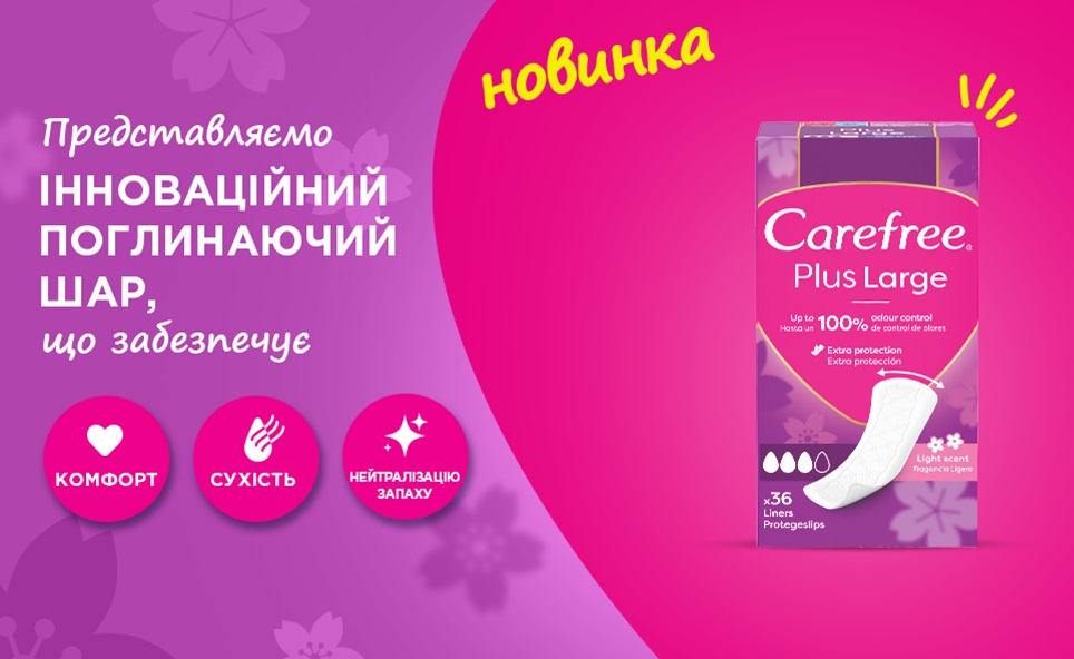 Щоденні гігієнічні прокладки Carefree Plus Large 36шт