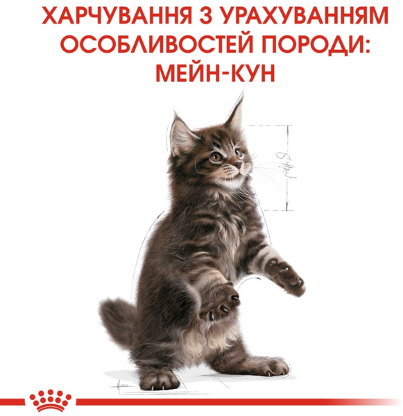 Повнораціонний сухий корм для кошенят породи мейн-кун у віці до 15 місяців.
