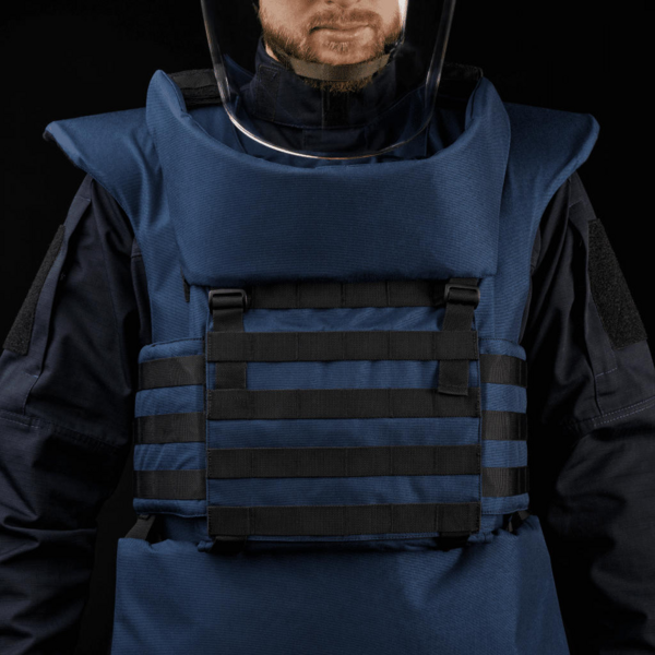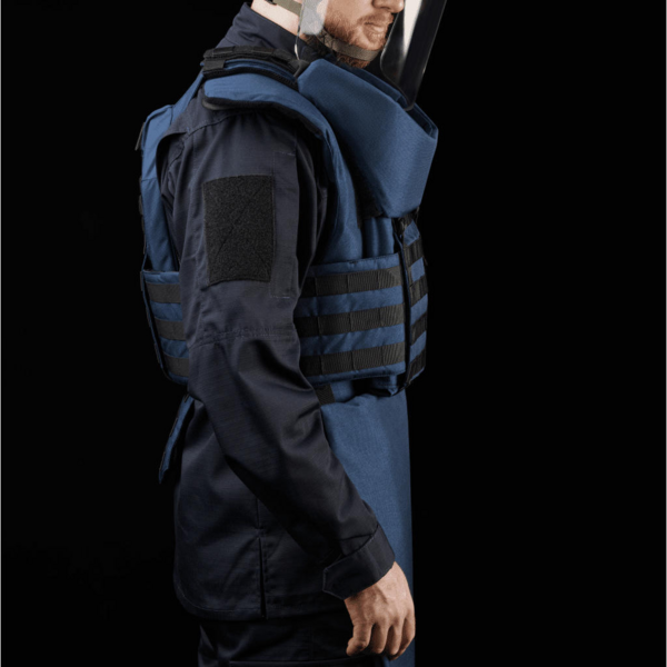 Виріб забезпечує оптимальний захист усіх життєво важливих органів і вразливих місць. Органи, артерії та сухожилля закриті від уламків, щоб максимально убезпечити оператора розмінування під час виконання завдань.