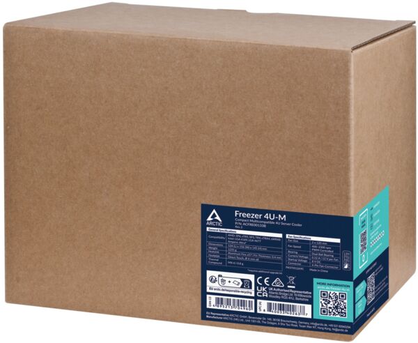 Оптимізована монтажна висота всього 145 мм дозволяє встановлювати його як у класичні серверні стійки 4U, так і в більшість споживчих корпусів 4U, доступних на ринку. Freezer 4U-M Rev. 2 вирізняється компактною конструкцією. Завдяки цьому він також підходить для материнських плат із двома сокетами. Вентилятори можна легко поміняти місцями, щоб відрегулювати напрямок повітряного потоку в разі потреби.