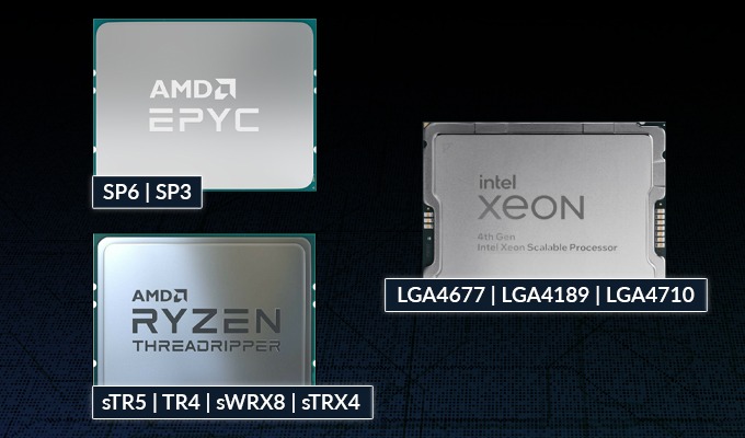 | Тип процесорного сокету | AMD Socket SP3, AMD Socket SP6, AMD Socket sTR5, AMD Socket sTRX4, AMD Socket sWRX8, AMD Socket TR4, Ampere Socket 4926, Intel Socket 4189, Intel Socket 4677, Intel Socket 4710 |